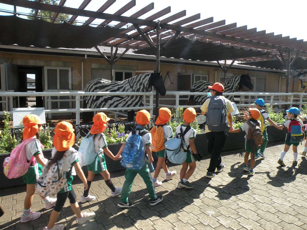 本日、大型バスに乗って府中競馬場に行ってきました!まず、大きなバスに大興奮!そして間近に大きなお馬さんを見ることが出来て大喜びの子ども達!お馬さんの練習している様子やショーも見ることが出来ました。遊具でも楽しく遊び、特にローラーすべり台が気に入ったようで繰り返し楽しんでいました。綺麗な芝生の上でゴロゴロするのも気持ち良かったね!お母さんの作ってくれたお弁当もみんなで美味しく食べました♪