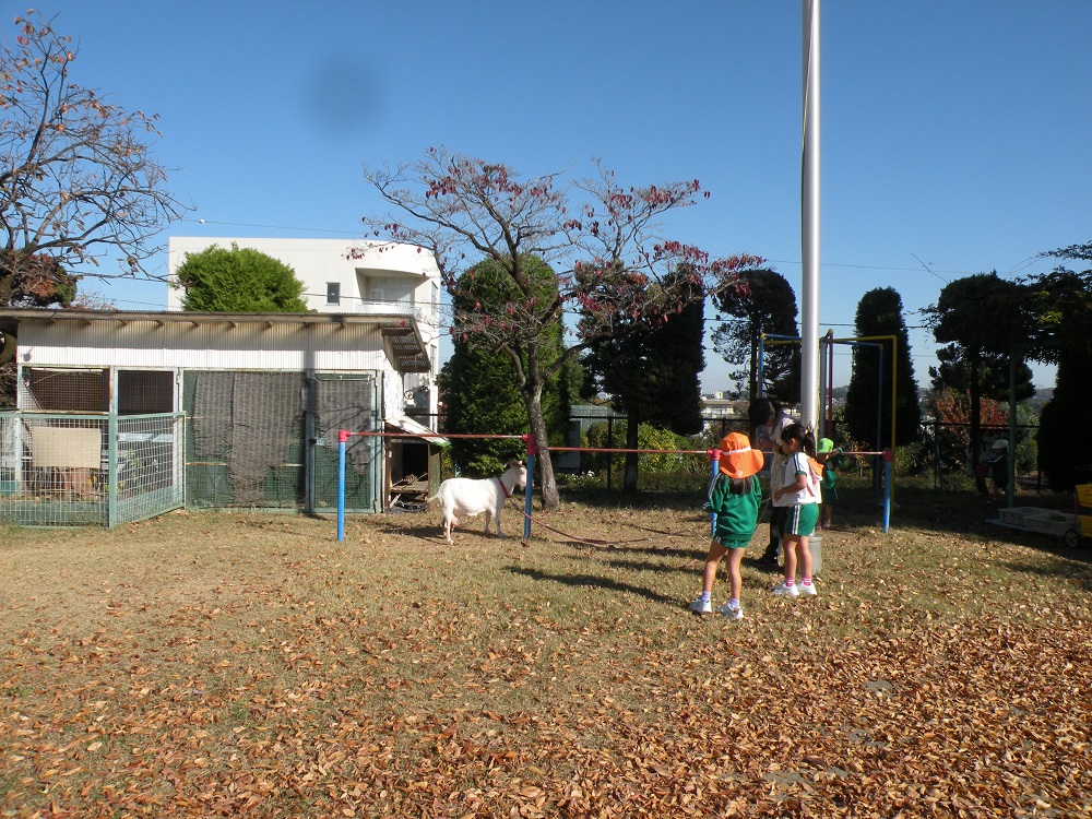 ヤギのミミちゃんも落ち葉が大好き!むしゃむしゃとよく食べていました
