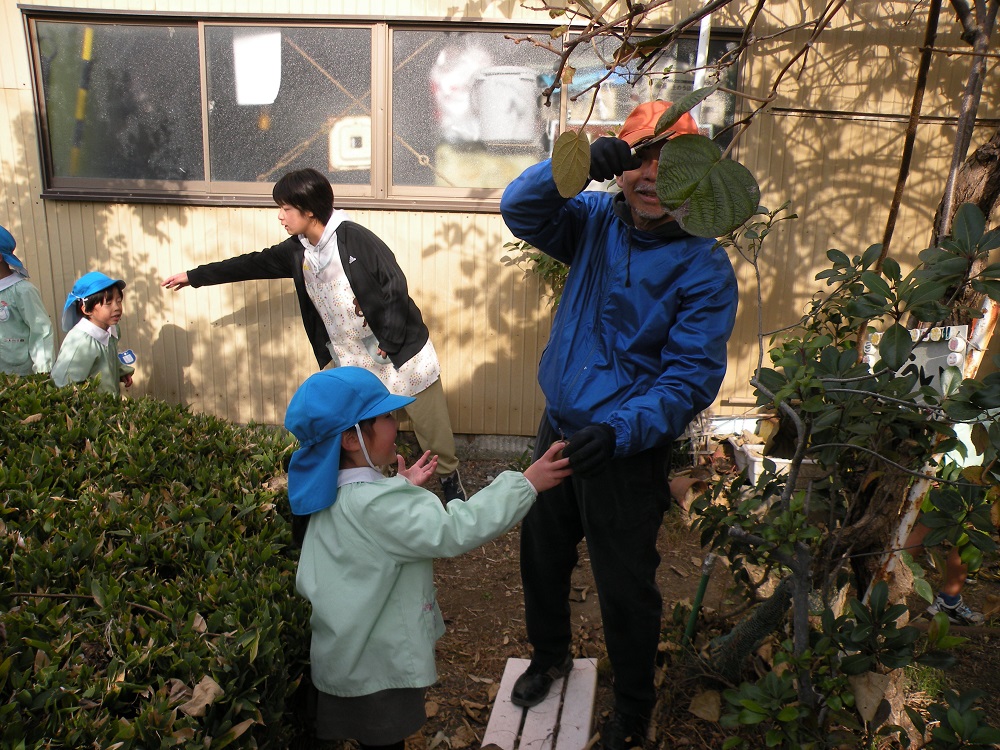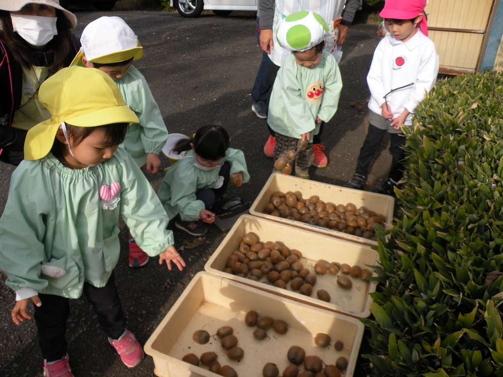 先生と関口さんに枝を切ってもらい、子ども達は実をもいで箱に入れるお手伝い!