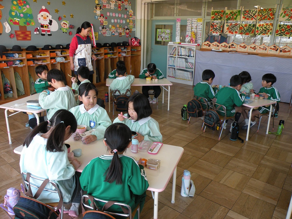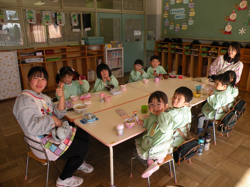 年長さんが切ってくれた野菜を大鍋でぐつぐつ煮て、出来立てのとん汁をみんなで食べました。美味しかったねたくさん食べて、沢山遊んで元気な身体を作りましょう!