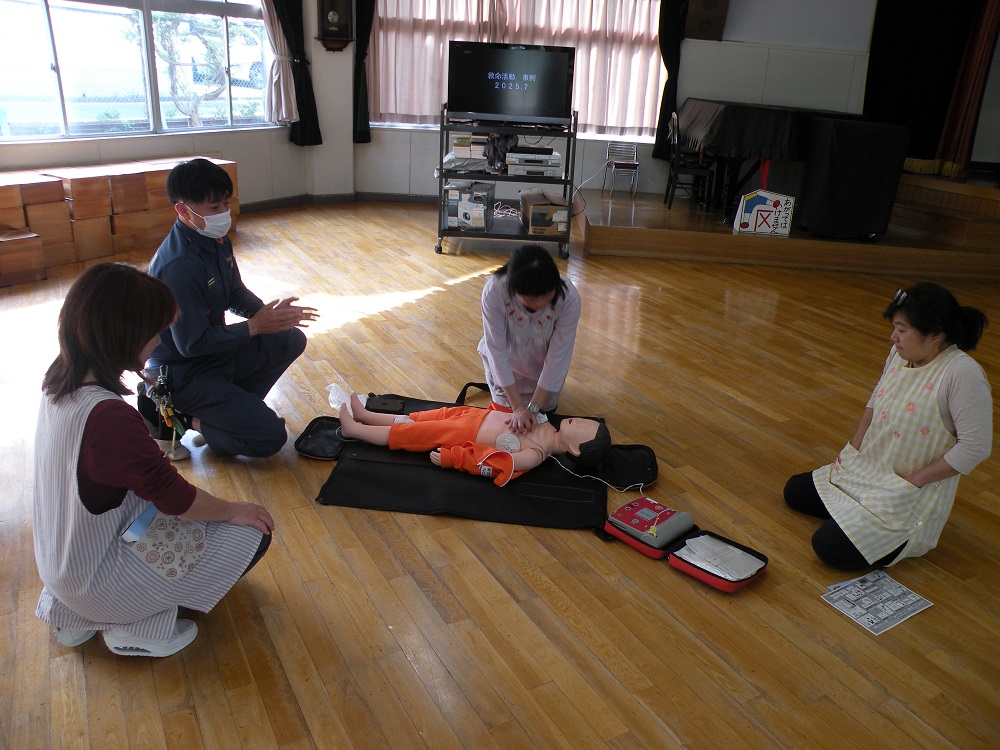 今年も消防署の方に来て頂き、AEDを使用した救命訓練や消火器の使用方法等を教えて頂きました。