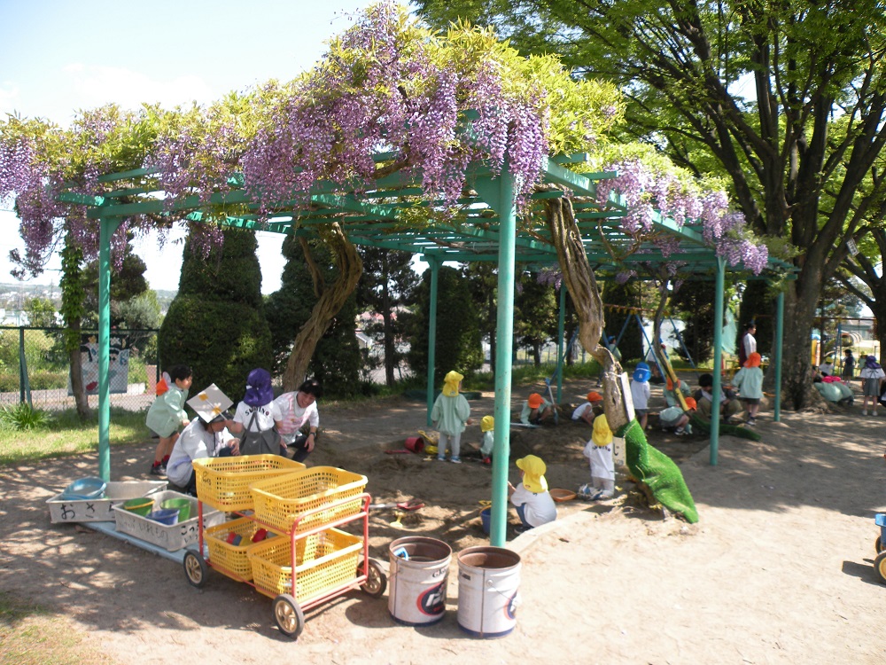 いつもよりも早くふじの花が満開になりました!お天気の良い日には外に出て沢山体を動かして遊んでいる子ども達!色々な発見をしたり、虫も沢山見つけている子供たちです♪